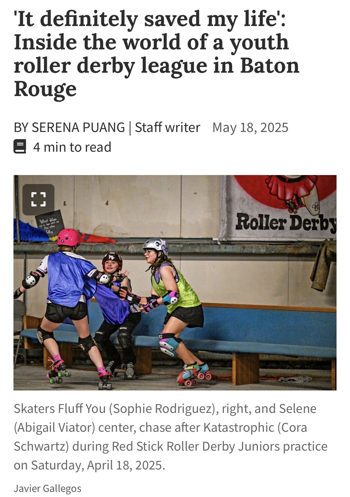 Red Stick Roller Derby Juniors was founded in 2017 by members of Red Stick Roller Derby. We are a Baton Rouge, Louisiana based Junior Roller Derby league dedicated to bringing the exciting sport of roller derby to area youth. We strive to provide opportunities for skaters of all skill levels to learn and play in a fun, safe and supportive environment.