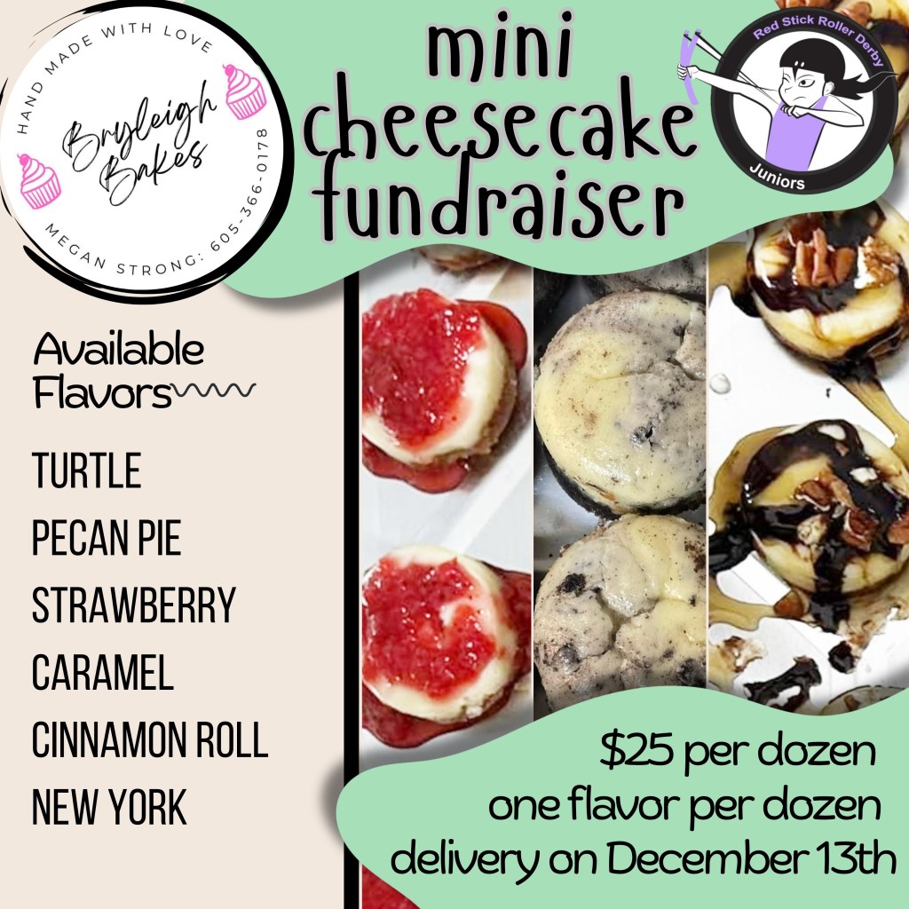 Red Stick Roller Derby Juniors is holding a mini cheesecake fundraiser!